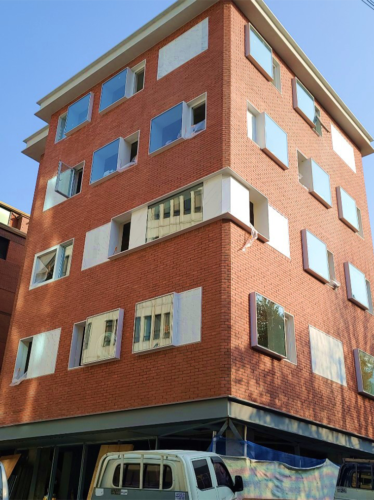 남산동 근생빌딩 리모델링현장 외/내부에 자재 납품 및 시공을 진행했다.