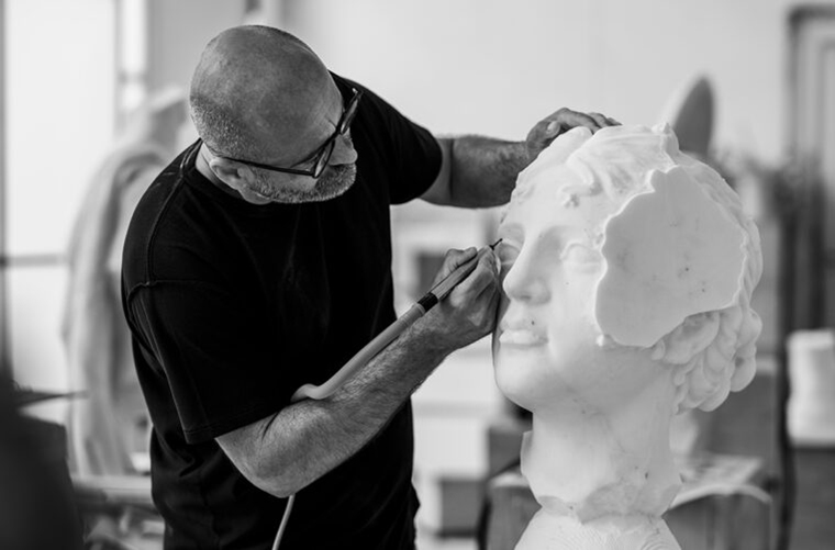 전통과 상상력이 부딪히며 만들어내는 미묘한 불협화음, 그것이 그의 매력이다. 그는 직접 돌을 깎기도 하지만, 사실 그의 손만으로 모든 작업이 완성되는 건 아니다. 컴퓨터 프로그램으로 모델링을 하고, 로봇이 대리석을 깎아내고, 조수들이 조각을 다듬는다. 이미 세상에 존재하는 캐릭터를 빌려와 작품을 만들기도 한다. 그럼에도, 그 모든 과정의 주인은 여전히 틴콜리니다.