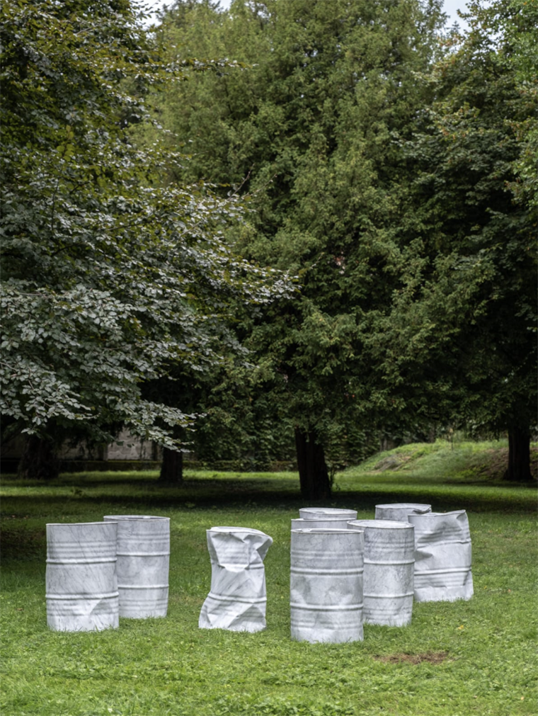 카라라의 돌은 정직하다. 하지만 틴콜리니는 그 돌을 조금 비틀어 세운다. 표면에 작은 드로잉을 새기고, 때로는 만화같은 장난스러운 포즈를 취하게 만든다.