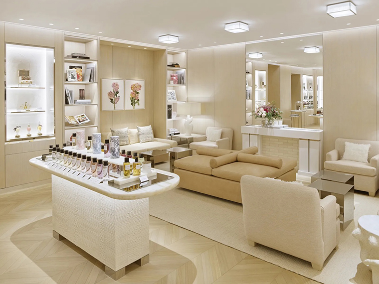 내부는 여성·남성 컬렉션, 파인 주얼리, 타임피스, 디올 메종, 향수·뷰티 라인까지 네 개 층에 나뉘어 있고, 각 층은 독립된 방처럼 꾸며져 있다.