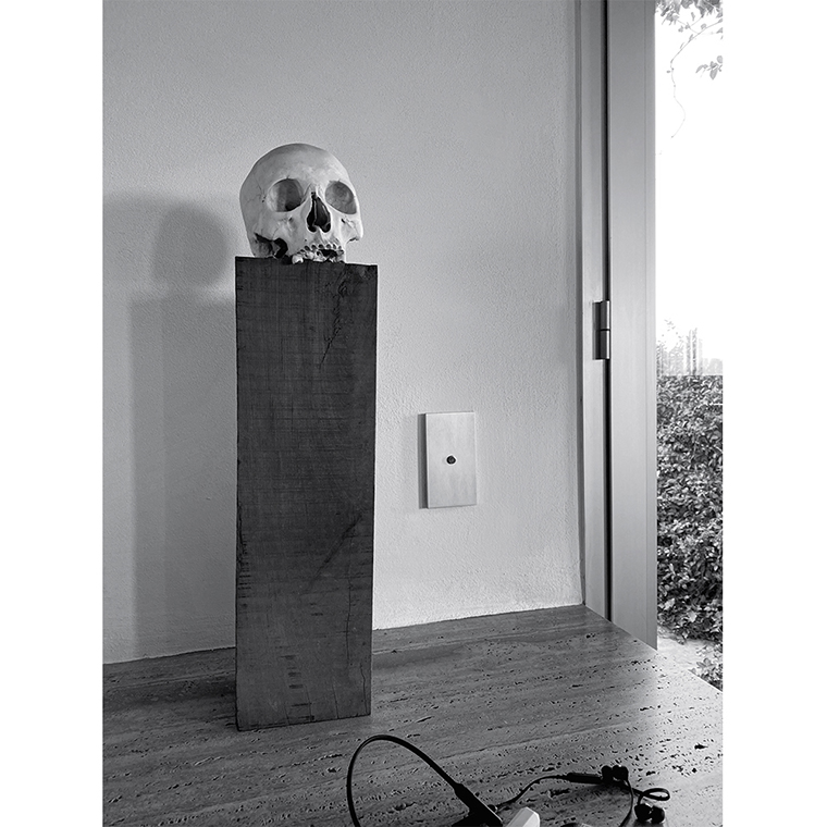 의과대학 경매에서 산 해골, 돌아가신 아버지의 엽총, 기원전 8세기 무렵의 석관 같은 죽음을 상징하는 오브제들 또한 놓여 있다.