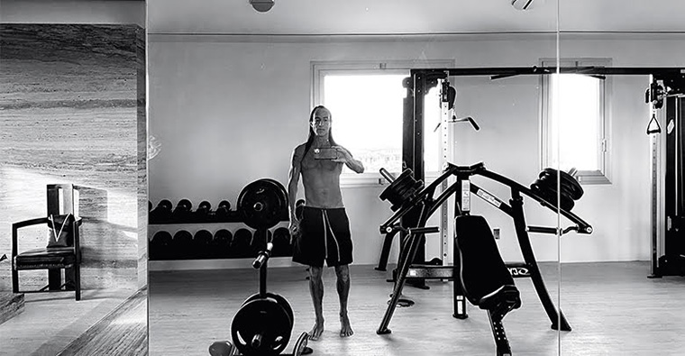 그의 집을 보면 트라버틴으로 둘러쌓인 커다란 방, 수많은 운동기구들, 거대한 침대, 그리고 몇 개의 불편해 보이는 의자와 책상이 전부다.